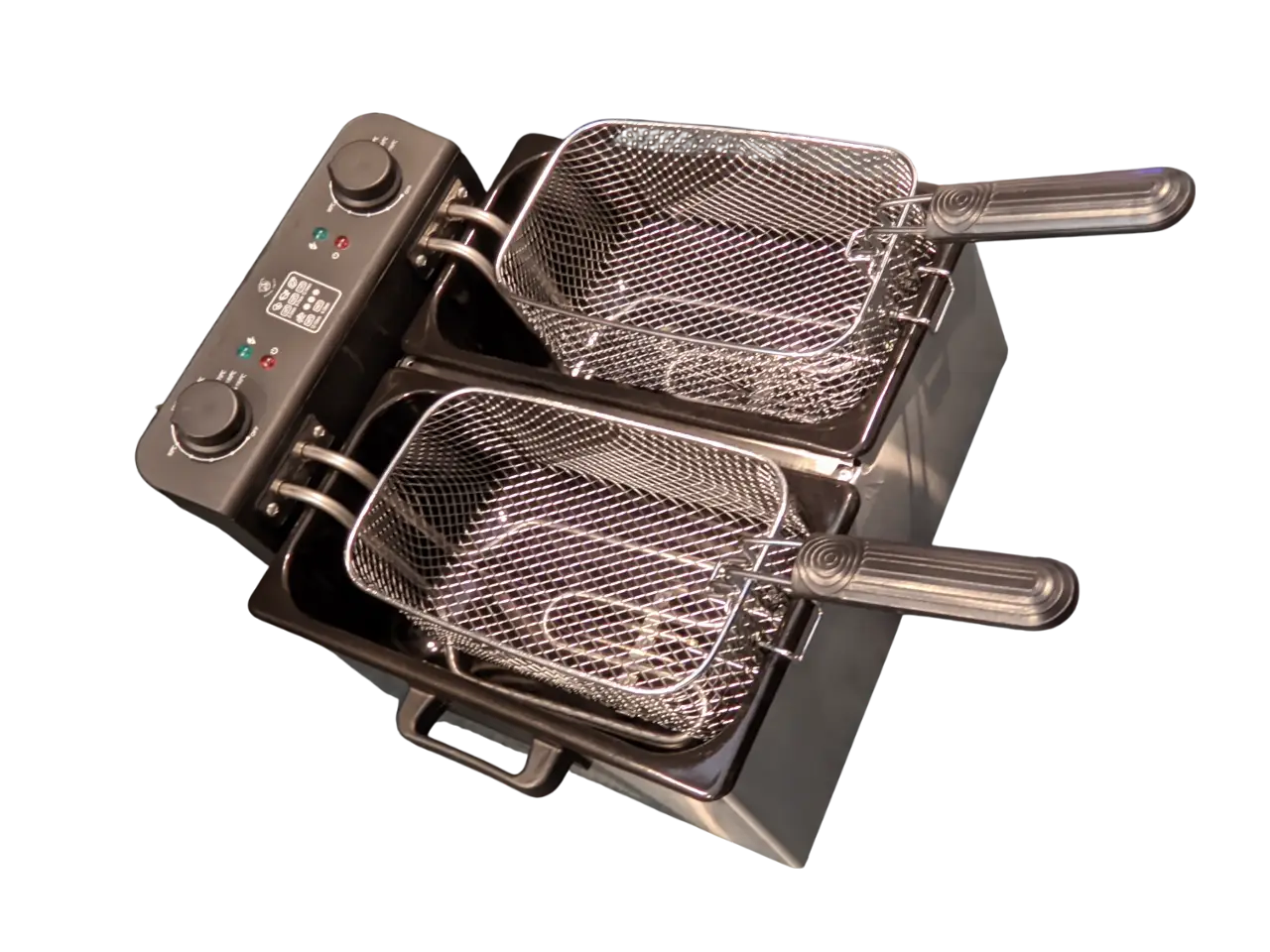Bringen Sie professionelles Frittieren in Ihre Küche mit der Royal Swiss Doppelte Fritteuse, die für schnelles, gleichmäßiges und effizientes Kochen entwickelt wurde. Mit einem leistungsstarken 3300W Heizungssystem und zwei Körben ist sie perfekt für die Zubereitung von Pommes, Hähnchen, Fisch und mehr – alles auf einmal.