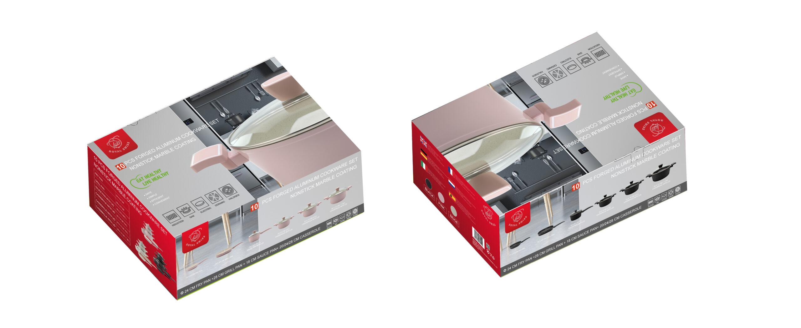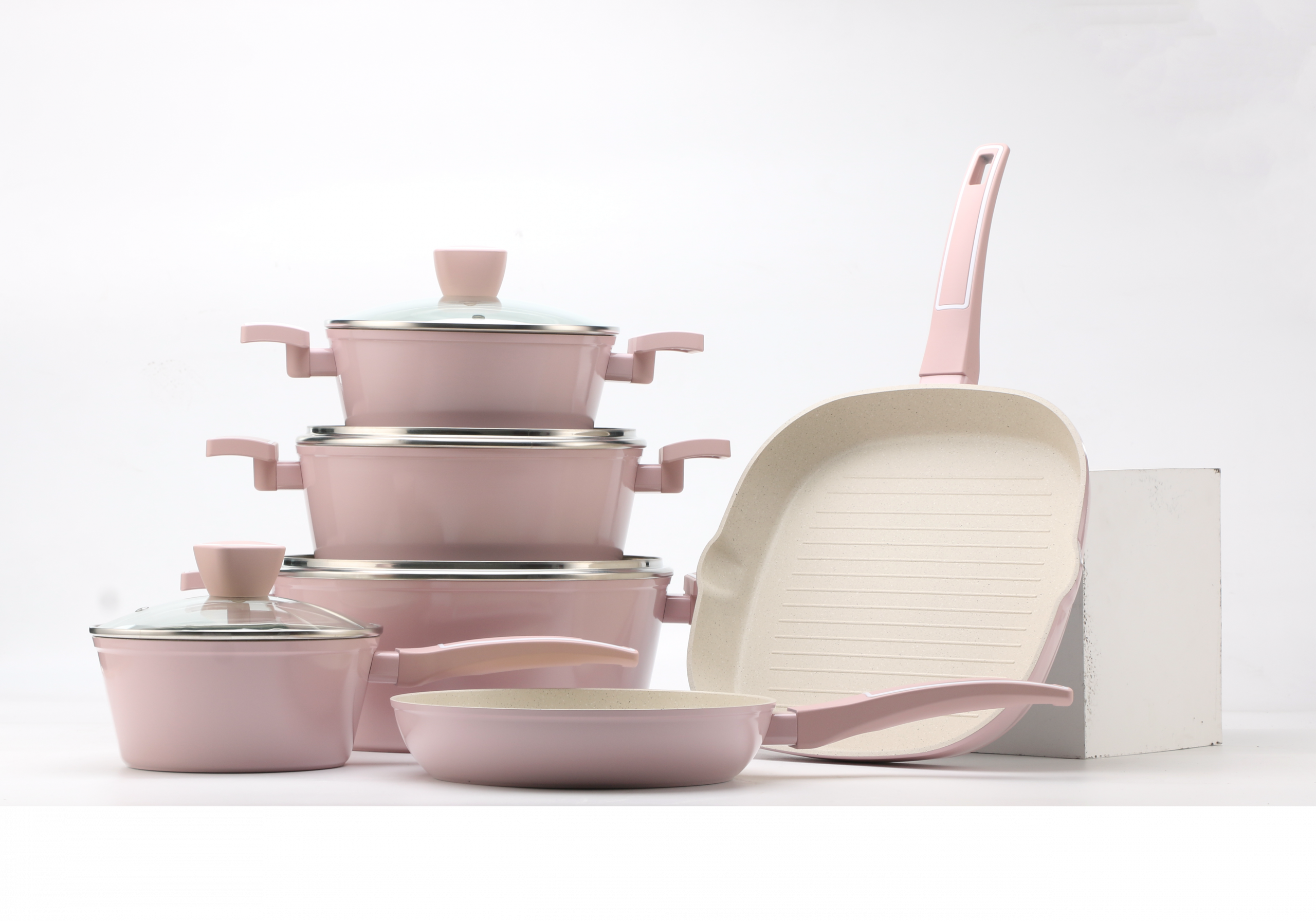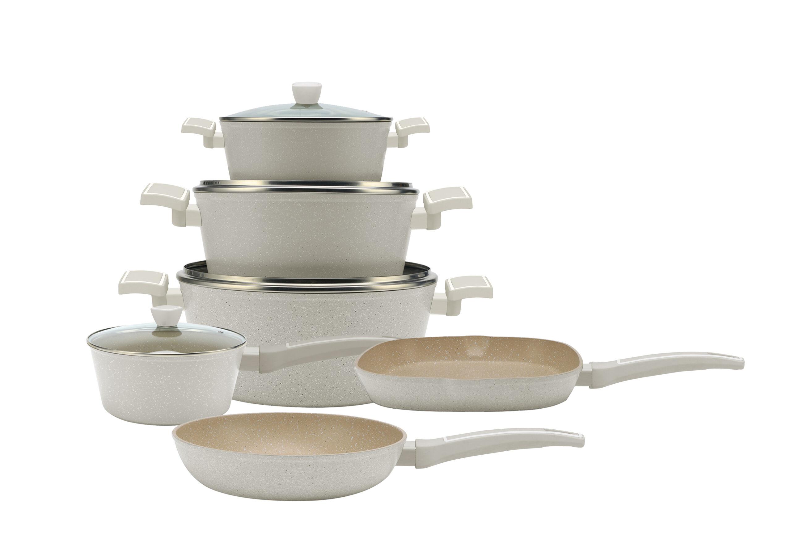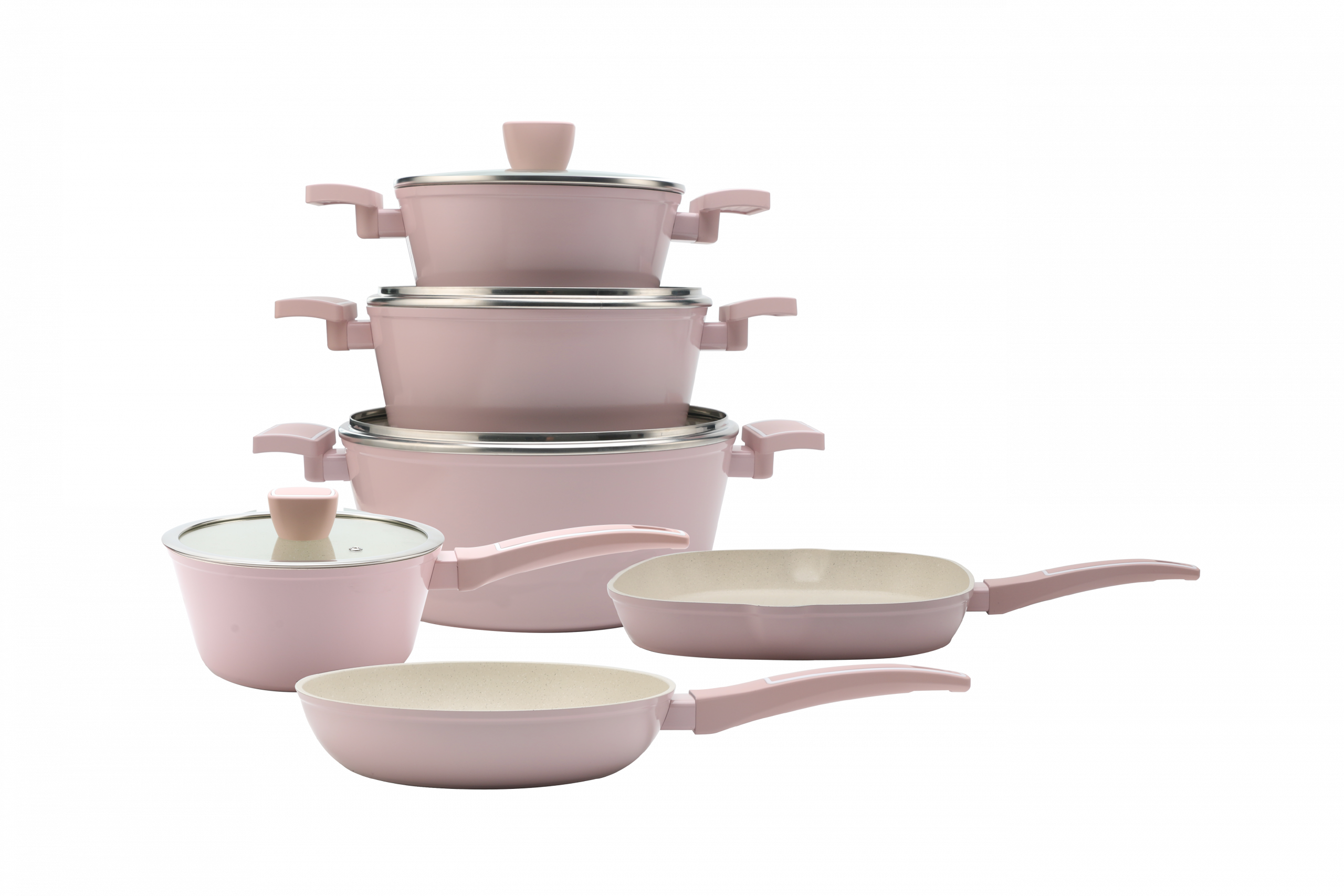 Royal Swiss – 10-Piece Cookware Set with Extra Grill – Black, Beige & Pink